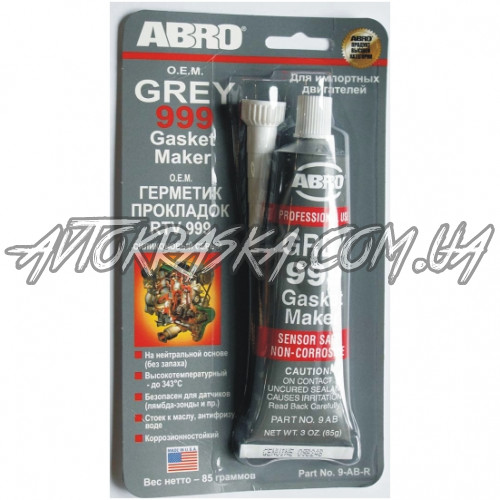 Силіконовий герметик прокладок АБРО 999 спеціально розроблений для ремонту прокладок в двигунах японських автомобілів, але також може бути використаний у двигунах виробництва США і Європи. Ідеально підходить для заміни прокладок в кришці картера коробки передач, корпусі термостата, впускному колекторі, піддонах картера та водяних помп. Не розкладається під впливом автомобільних рідин (за винятком бензину).