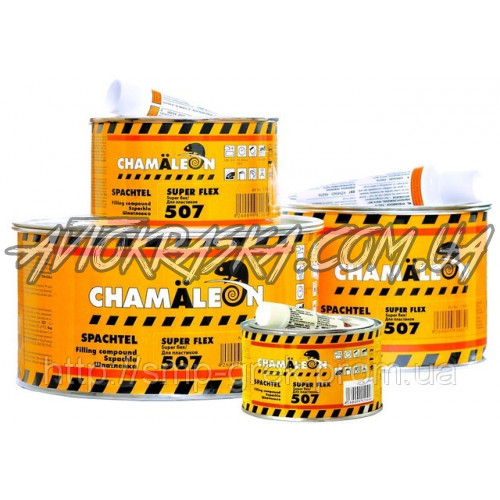 Шпаклівка для пластмас Chamaleon 507 — призначена для ремонту пластикових елементів автомобіля, заповнення подряпин і пошкоджень, а також для шпаклювання з'єднаних пластикових деталей.