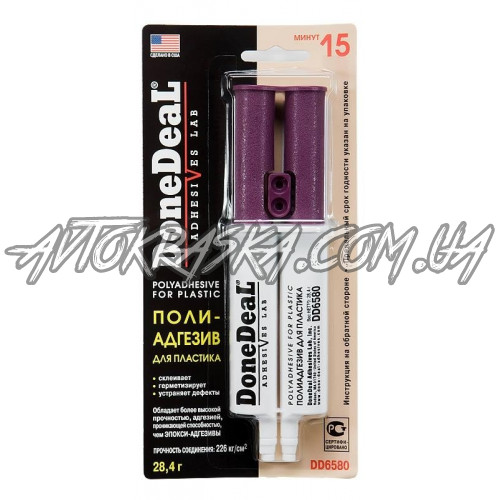 Двокомпонентний епокси-адгезив у упаковці "шприц" для ремонту та склеювання більшості пластмас і пофарбованих металів. Утворює надійне та довговічне водонепроникне з'єднання.