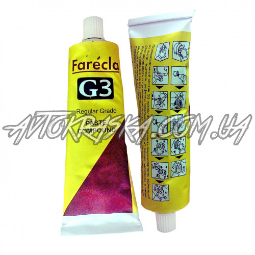 Полірувальна паста Farecla G3 використовується на більшості лакофарбових покриттів, на скловолокні, зміцненому пластику (GRP), ламінатах, лакованій меблів та свіжопофарбованих поверхнях. Вона забезпечує відмінну рівномірну обробку. Наноситься вручну або за допомогою полірувальної машини.