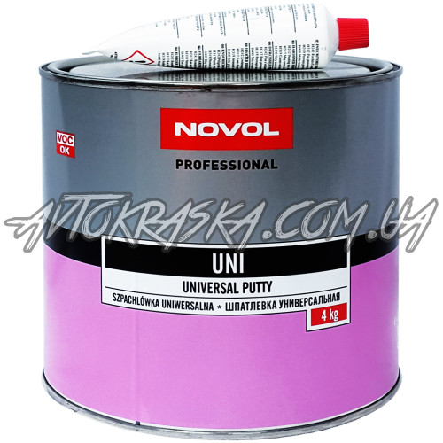 Універсальна шпаклівка Novol UNI – основне заповнювальне шпаклювання. Відносно тверда і з невеликою еластичністю рекомендується в основному для механічної обробки, а також для застосування на невеликих поверхнях. Має дуже хорошу адгезію до різних видів основ, проте не рекомендується для застосування на оцинкованій сталі.