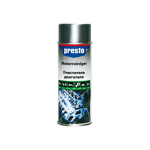 Очищувач двигуна Presto - це ефективне засіб для очищення холодного двигуна і його вузлів від масла, мастильних матеріалів, бруду та інших забруднень. Використовується для всіх типів двигунів. Швидко та легко змивається разом із брудом водою. Безпечний для пластика та гуми.