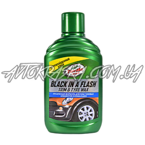 Поліроль-гель Black In Flash Чорна блискавка Turtle Wax FG6324 миттєво відновлює колір і блиск внутрішнього та зовнішнього пластику автомобіля, вінілу і гуми. Сучасна формула дозволяє нанести антистатичний, пиловідштовхуючий і брудовідштовхуючий захисний шар на бампери, боковини шин, панель приладів, молдинги та оздоблення дверей. Завдяки концентрованій гелеобразній формулі «Чорна блискавка» не залишає патьоків і плям, а силікони, що входять до складу, забезпечують надійний захист на кілька тижнів. Безбарвний прозорий гель ідеально підходить для деталей оздоблення будь-якого кольору.